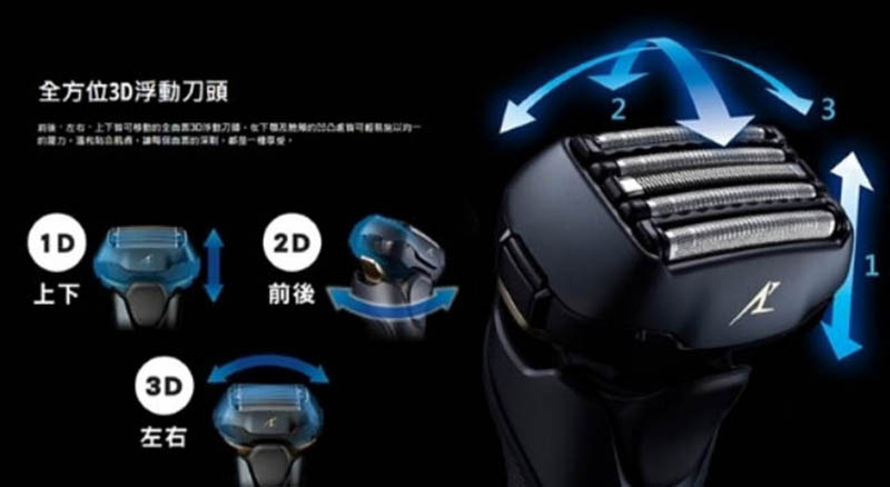 Panasonic國際牌電鬍刀ES-LV97採用五刀頭、搭配3D浮動刀頭設計,能達到舒適的刮鬍體驗。(圖片來源:遠傳friDay購物)