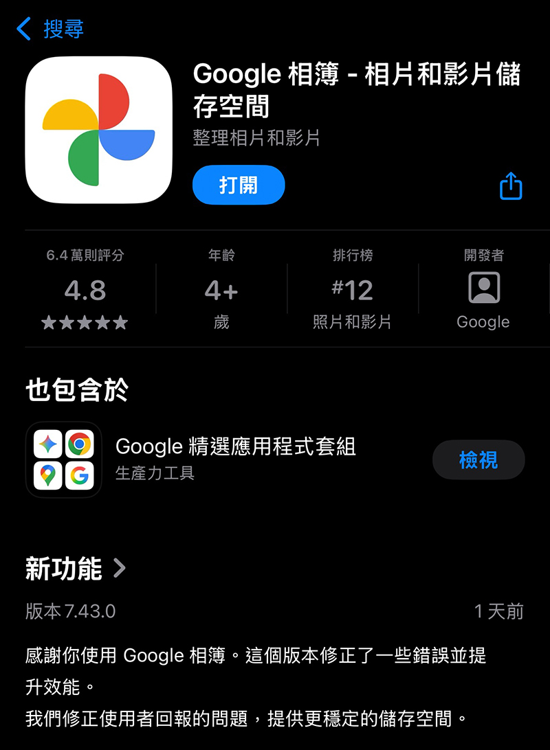 Google相簿功能持續進化,不僅導入AI應用,編輯工具也越來越完整;近日Google為iOS版本加入「貼圖」功能,可惜的是⋯⋯雖然名稱聽起來新奇,但實際上更像「一鍵去背」,而且目前尚未開放Android版本,想體驗的朋友還得再等一等。