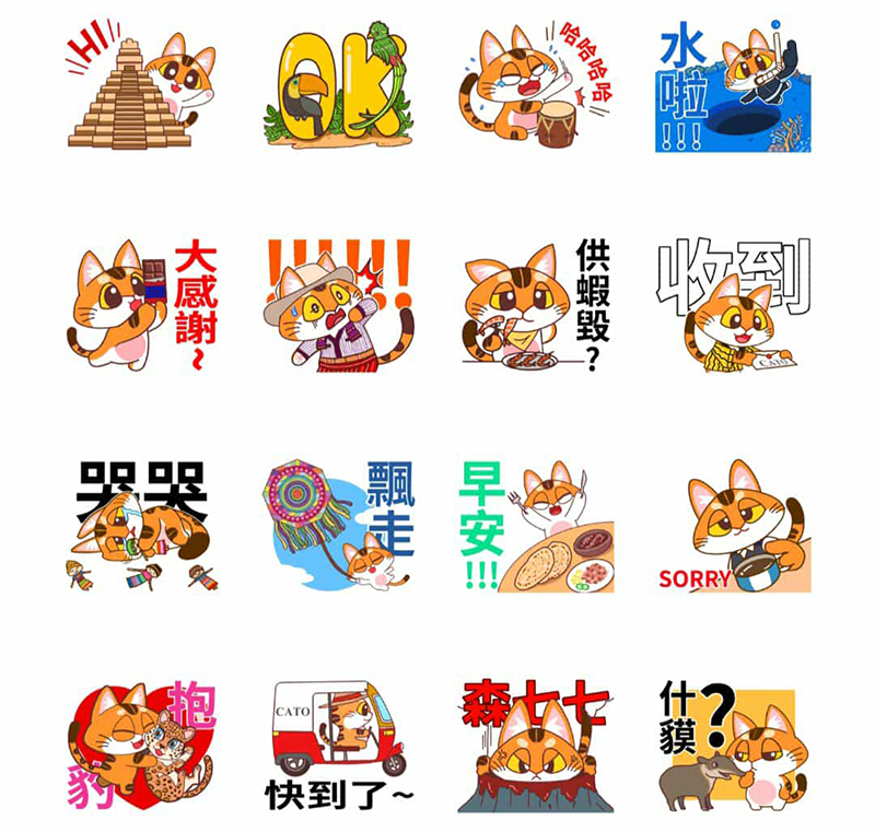 為讓民眾以輕鬆有趣的方式認識中美洲友邦文化,中美洲經貿辦事處(CATO)推出全新LINE貼圖,由超人氣吉祥物「咖豆貓」領銜登場,以中美洲兩大友邦─瓜地馬拉與貝里斯為主題,精心設計16款融合友邦特色與生活語彙的趣味圖像,只要把「中美洲經貿辦事處」LINE官方帳號加為好友,就能免費下載。