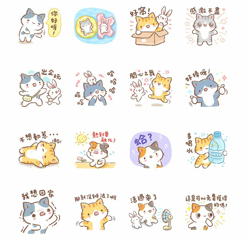 LINE購物與秘密貓合作推出免費貼圖,陪你度過歡樂的聊天時光,只要把「LINE購物」官方帳號加為好友,就可以免費下載貼圖。