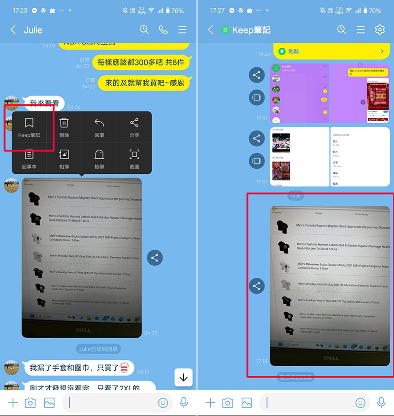善用LINE Keep功能也是一招,操作步驟如下:長按過期的「照片」→「Keep筆記」→「傳送」→接著再到Keep筆記裡,查看能否開啟照片。