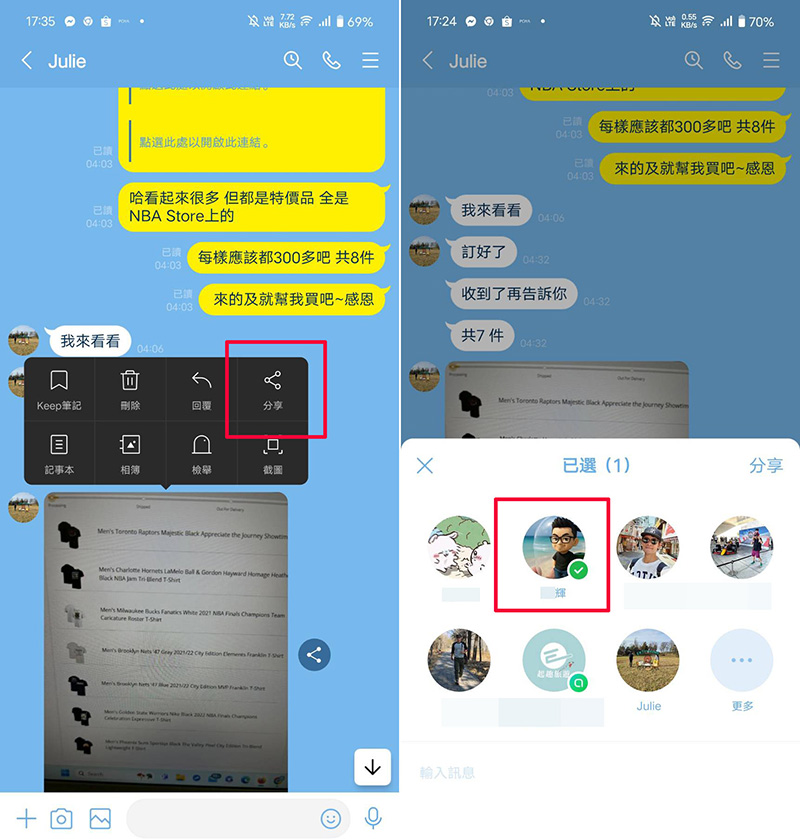 如果曾在LINE開啟過該照片,那麼就算沒有下載,也還是有機會能找回過期照片,操作步驟如下:長按過期的「照片」→「分享」→選擇「分享到其他朋友聊天室」,查看照片能否開啟。