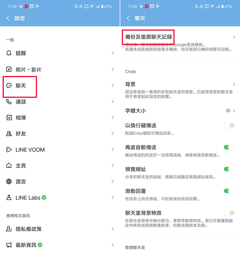 如果曾備份過LINE聊天記錄,過期的檔案可能會隨著對話一起被保存。操作步驟如下:LINE「設定」→「聊天」→「備份及復原聊天記錄」→「從Google雲端硬碟復原→當復原完成後,可嘗試開啟過期的檔案。