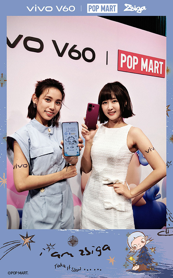 這次聯名活動也會在全台vivo官方體驗店打造主題空間,購機同時也能體驗ZSIGA魅力並參與互動。即日起至9月30日,只要在全台任一地點找到POP MART ZSIGA,拍照上傳至FB或IG,追蹤vivo_Taiwan(FB/IG擇一),並標註#vivoV60與#vivoxPOPMART,再至vivo官方體驗店出示該貼文畫面,即可獲得vivo V60 x POP MART ZSIGA聯名特製款手機掛繩(數量有限,送完為止)。現場完成問卷填寫還能參加抽獎,有機會將聯名禮盒帶回家。