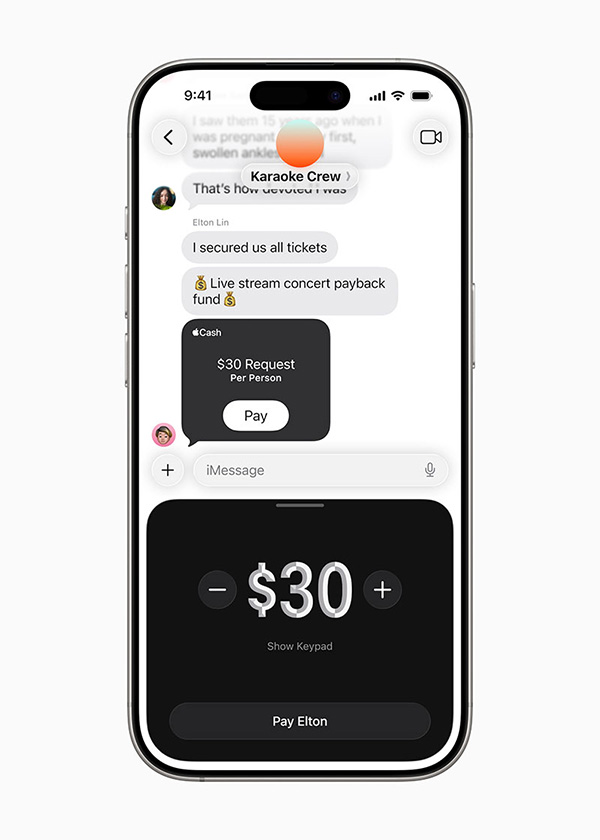 有辦理Apple Cash可透過iMessage轉帳。(圖片來源:Apple)