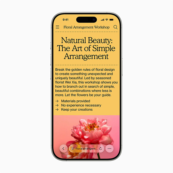 Safari改為全螢幕滿版顯示。(圖片來源:Apple)