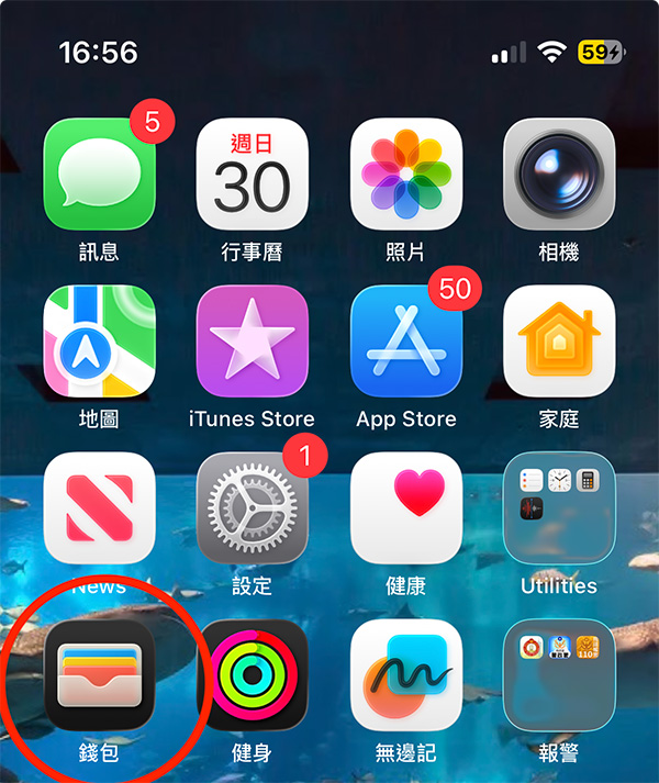 步驟1:開啟「錢包」,打開iPhone → 點選「錢包」。
