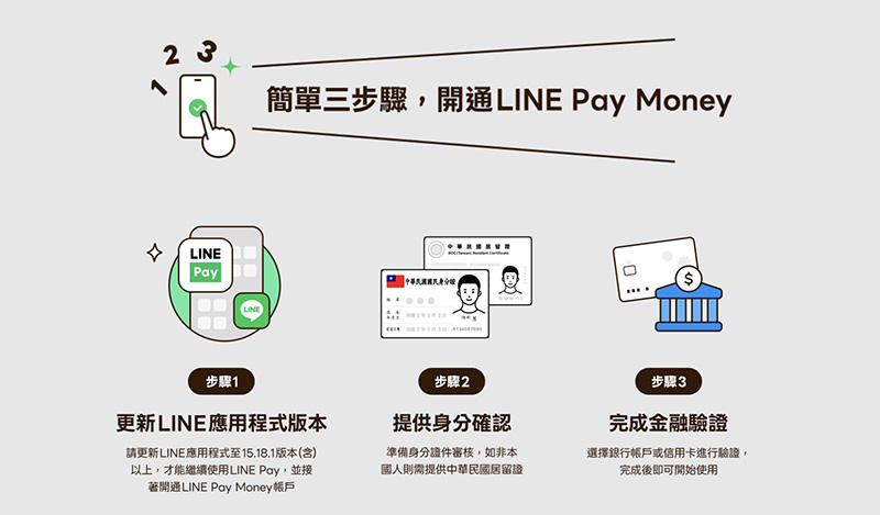 新一代LINE Pay Money帳戶開通只要3個步驟。(圖片來源:LINE)