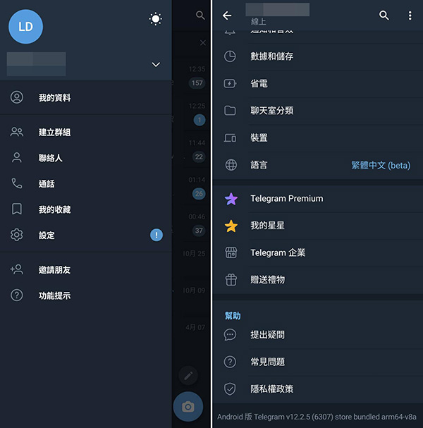 手機版Telegram設定中文介面步驟如下(以Android示範):