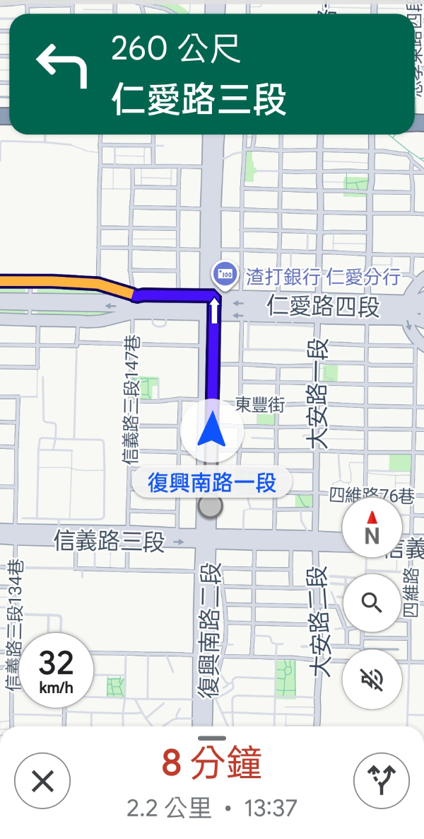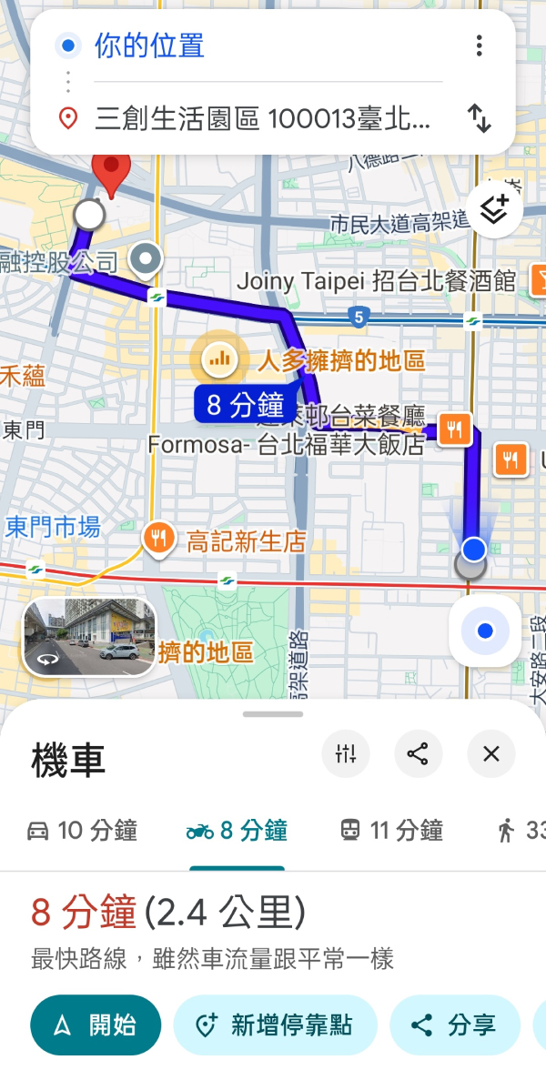 接著選擇要使用的交通方式,選擇機車,接著就會進入導航畫面