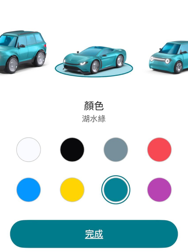 進入導航畫面後,點選箭頭圖示,便有多種車色與多種機車選擇,目前共有5種車型,8種車色可選,分別有冰川白、霧黑、清水模灰、天藍色、陽光黃、日落洋紅色等。有常見的速克達車型,也有帥氣的巡航車等,通常人們的心態,都會選擇那現實生活中,無法擁有的車色或車型。