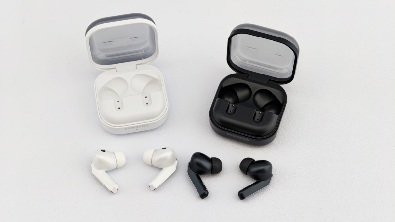 在款式與配色的選擇上,Samsung Galaxy Buds4標準版帶來了「曜石黑」與「極光白」兩色,而進階的Galaxy Buds4 Pro除了黑、白雙色外,更加碼推出三星商城限定的「粉霧金」優雅配色。