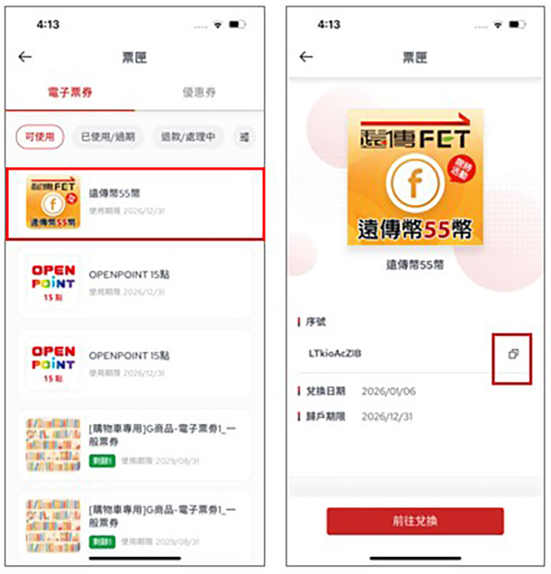 - 查看兌換商品,前往票匣進行歸戶