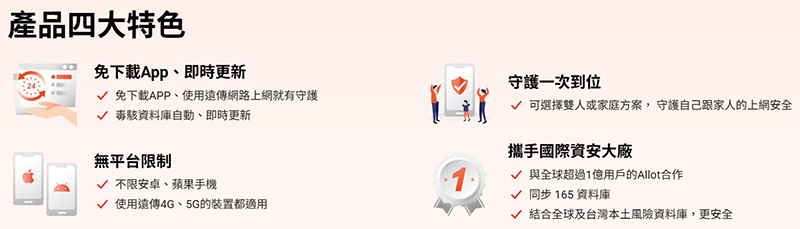 遠傳「防駭心守護」與國際資安大廠Allot合作,特點在於無需下載APP、無須配對,只要使用遠傳4G/5G行動網路,手機就能全天候在背景默默保護。(圖片來源:遠傳FET)