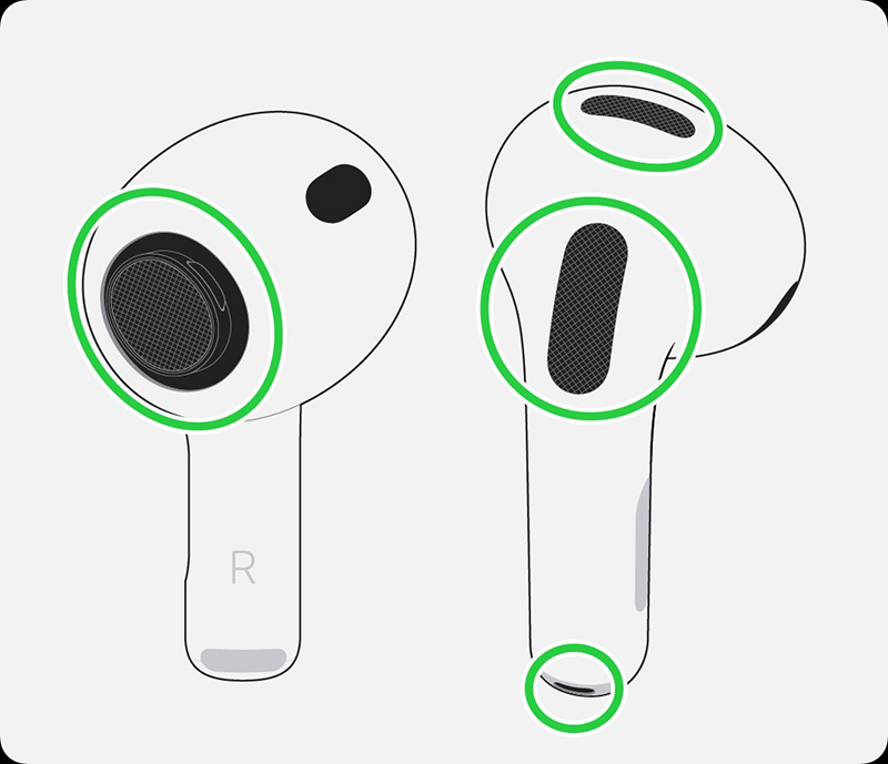 AirPods Pro 3上需要清潔的部分: