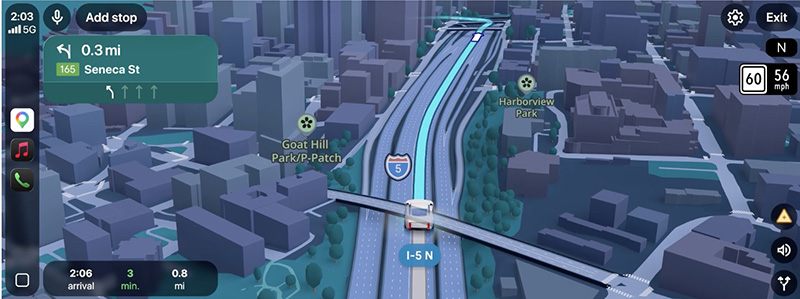 為了提升駕駛的行車體驗,Google地圖推出了沉浸式導航(Immersive Navigation),這被視為該應用程式十多年來最重大的導航更新;系統全面翻新了視覺介面,透過Gemini模型分析街景與空照圖,打造出能真實反映周遭建築物、陸橋與地形的生動 3D 畫面。