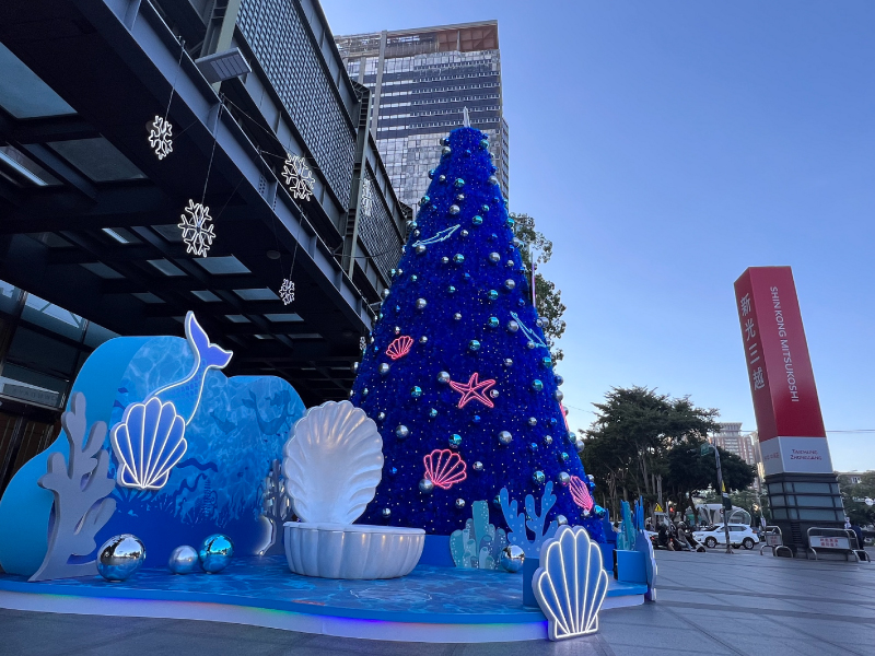 坐落於車水馬龍的台中台灣大道旁新光三越台中店,可說是全台消費力最強的店王,迎接今年的耶誕節,特別聯手Jo Malone 薰衣草與月光花擴香,10米高鑲著靈動海豚、閃耀海星的霓虹星願耶誕樹,圍繞著貝殼珍珠、躍動的鯨豚與尋覓人魚的童話驚喜,不僅可體驗奢華的海洋香氛,還有震撼海底音樂光影秀等360度的五感體驗,沉浸式體驗不同的耶誕氛圍!