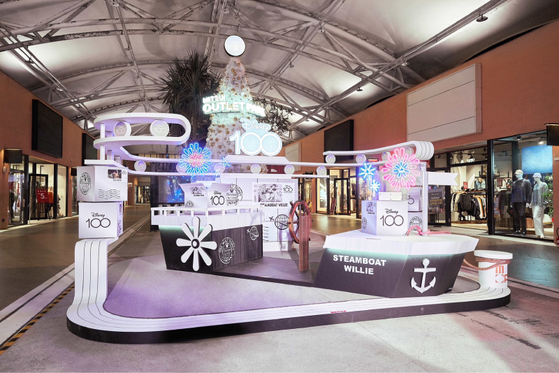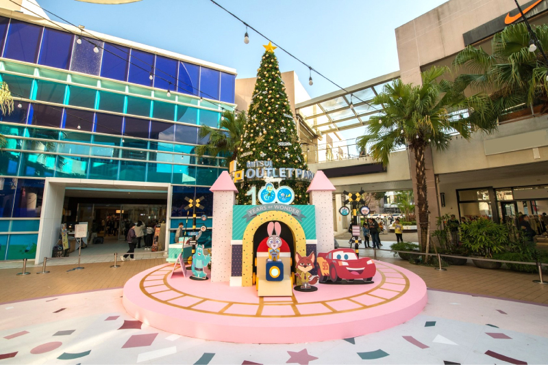 為歡慶迪士尼100周年,首度四設施聯手推出迪士尼主題燈飾「璀璨慶典」,透過迪士尼經典人物造景,攜手全台三井OUTLET、購物廣場,打造全台最長展期104天的迪士尼100周年主題燈飾造景。