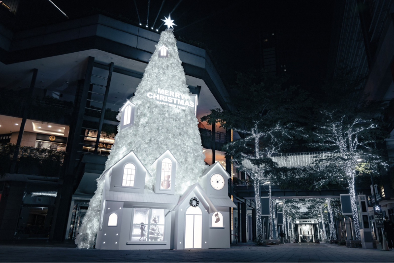新光三越信義新天地的耶誕樹,也是許多粉絲每年必定朝聖打卡的重要景點,今年特別聯手跨界策展團隊《INCEPTION啟藝》,以超過1萬株雪白葉片手工層層堆疊,打造17米高雪白時光之樹,並於時光小屋中加入12時序的概念,每小時展現不同窗景,象徵與重要的人一起度過每個時刻!更有全台首創「12時序聲光秀」,邀請金曲製作人侯志堅老師製作獨家原創耶誕歌曲,搭配炫彩燈光,創造近1200場飄雪動畫燈光秀!