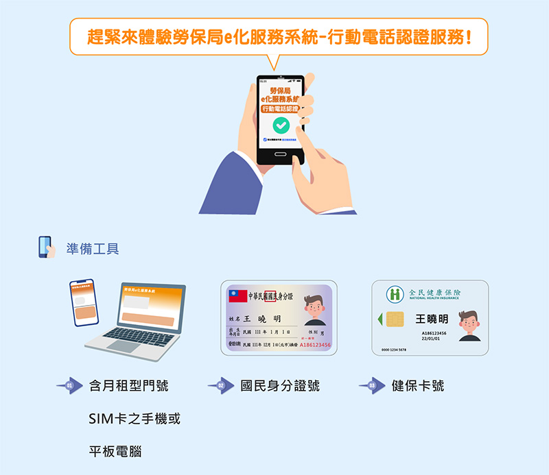 只要記得身分證字號+健保卡號,就能透過手機輕鬆登入勞保局系統。(圖片來源:勞動部勞工保險局)