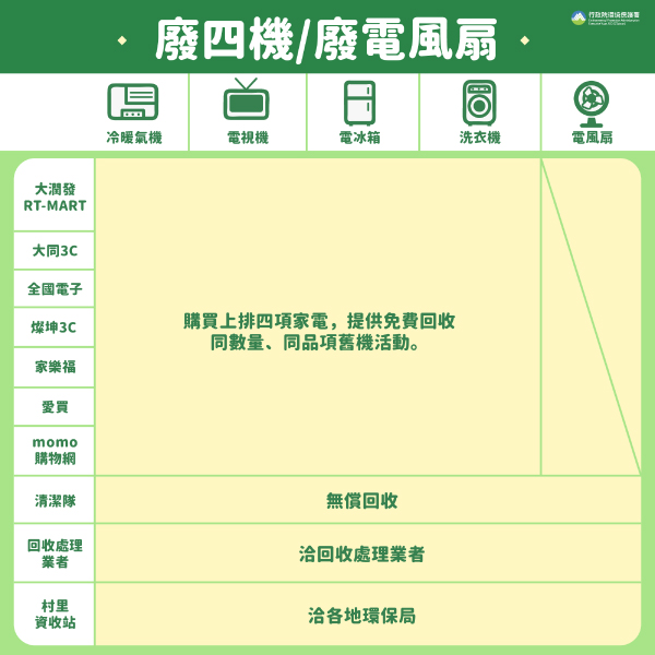 廢四機和廢電扇免費回收方式。(圖片來源:環境部臉書粉絲團)