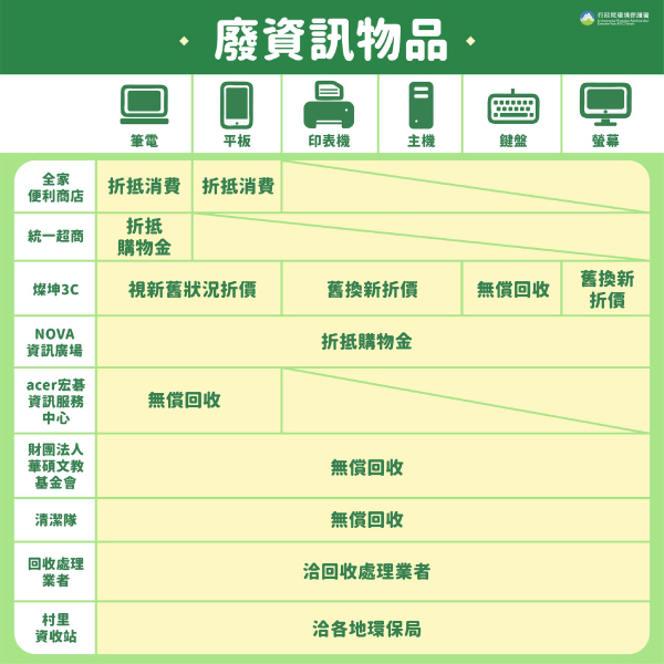不要的筆電、平板、印表機等廢電器回收管道。(圖片來源:環境部臉書粉絲團)