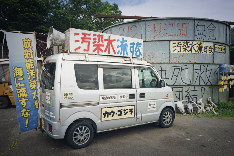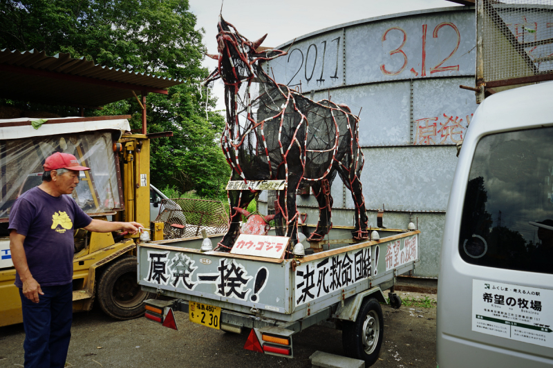 儘管吉澤先生一臉疲態,仍然把握時間傳達他所製作的反核裝置作品「核污然牛」精神,並用大大的六字標語「決死.救命.團結」代表他的核心理念:人類必須團結起來,以必死的決心拯救生命。吉澤先生說,牧場靠著大家的捐款及贈送的蔬菜、糧草才能運作下去,除了照顧牛群,他會繼續到日本各地進行演講,反對核能、抗議核電廠重啟、核廢水排入太平洋。