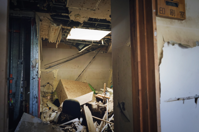 請戶小學一樓每個室內空間經過地震、海嘯侵襲,全都慘不忍賭。(圖片來源:Koyuki 攝影)