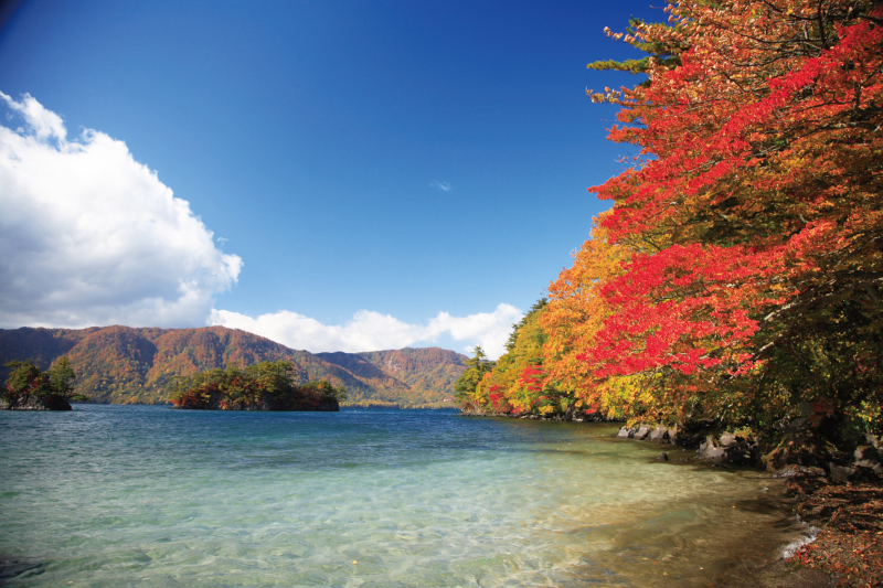- 秋田紅葉地圖》01. 田澤湖 群山紅葉與湛藍湖面