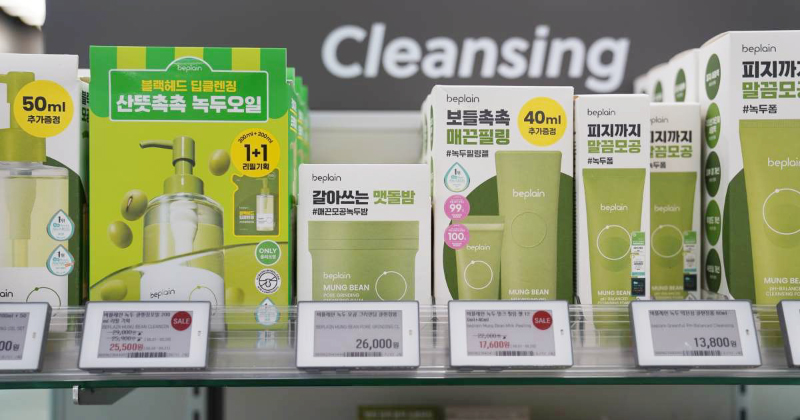 專為敏感肌與痘痘肌設計的「beplain」洗面乳,含有32%的韓國產綠豆萃取物,弱酸性配方(pH 5.5)每日使用也不會肌膚緊繃,能強力去除毛孔油脂並保持水潤感,因此在Olive Young的潔面產品類別中連續八年得到銷售冠軍。