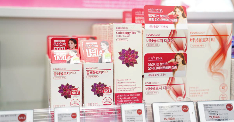 阻斷碳水的低醣飲食蔚為減重新風潮,來到Olive Young自然也少不了關注時下韓國最夯的健康減重商品,其中被暱稱為「小紅水」的保健品牌「FOODOLOGY」,酸甜石榴風味的濃縮液能幫助餐後血糖穩定、降低體脂肪為,品牌請來少女時代徐玄代言,韓妞們效法偶像每天必沖一杯來喝,方便攜帶的果凍條更是 Olive Young的熱銷排行榜前三名。