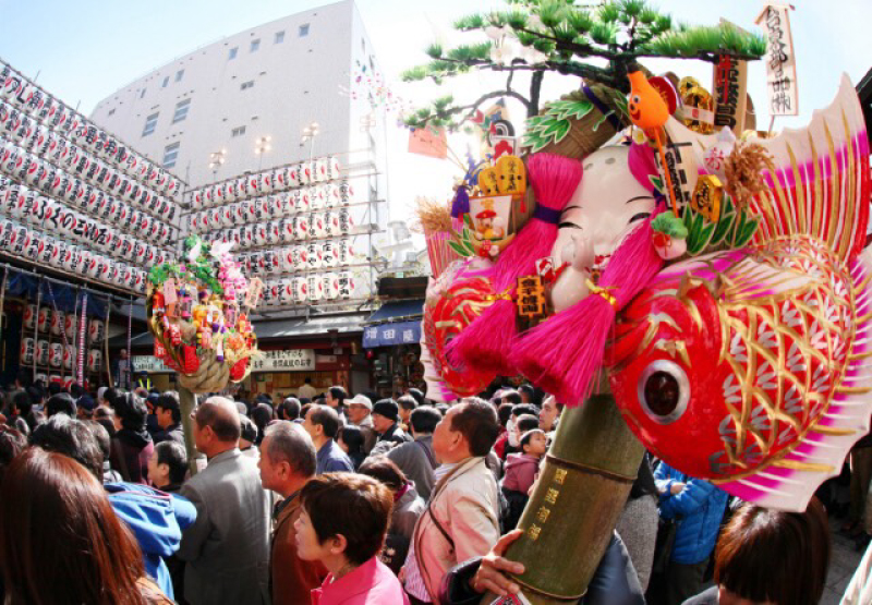 相傳酉之市的由來是江戶時代的農民為了感謝「鷲大明神」,用活雞奉納的收穫祭典,當11月的「酉日」來臨,以淺草鷲神社為首的關東各地鷲神社便會舉辦酉之市,原本是祈求五穀豐收與無病息災的慶典,演變成做生意的人一定要去,商人前來祈求生意興隆的開運祭典。