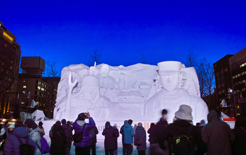 始於1950年的札幌雪祭已邁入第76屆,原本只是當地的高中生和國中生在大通公園搭建六座雪像,後來演變成自衛隊加入挑戰,到了第10屆時動員了包含自衛隊、札幌市民和學生們超過2500人製作巨大雪像,在新聞媒體的爭相報導下,成為日本最著名的冬日嘉年華。