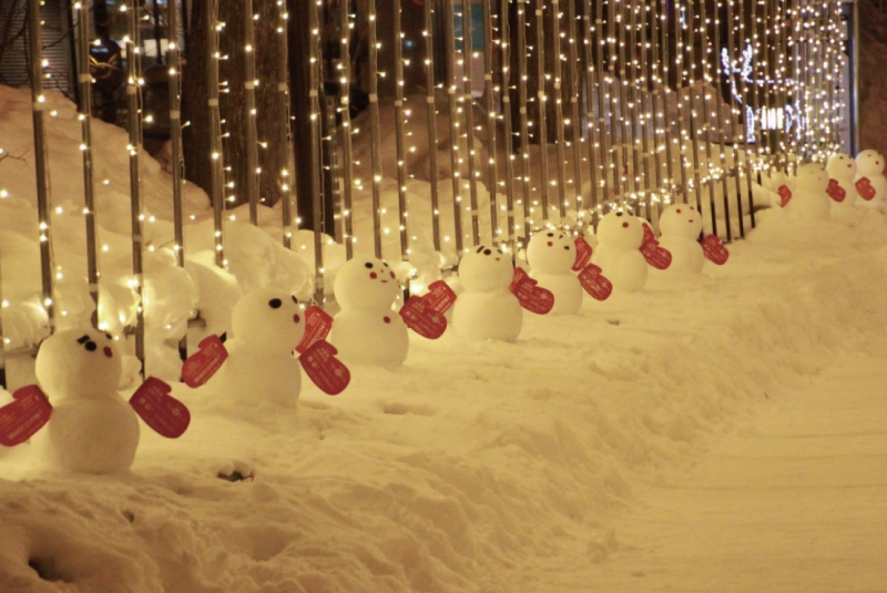 裝飾在雪徑的小雪人與燈光造景。(圖片來源:北海道官方網站)
