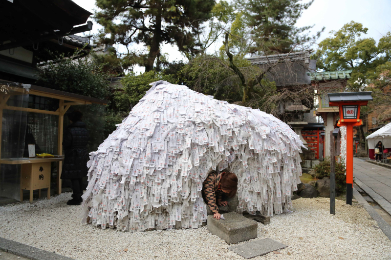 神社透過各種方式,例如求籤、御守、繪馬,甚至是鑽過貼滿符紙石碑來保佑人們得償所願。(圖片來源:妮可魯)