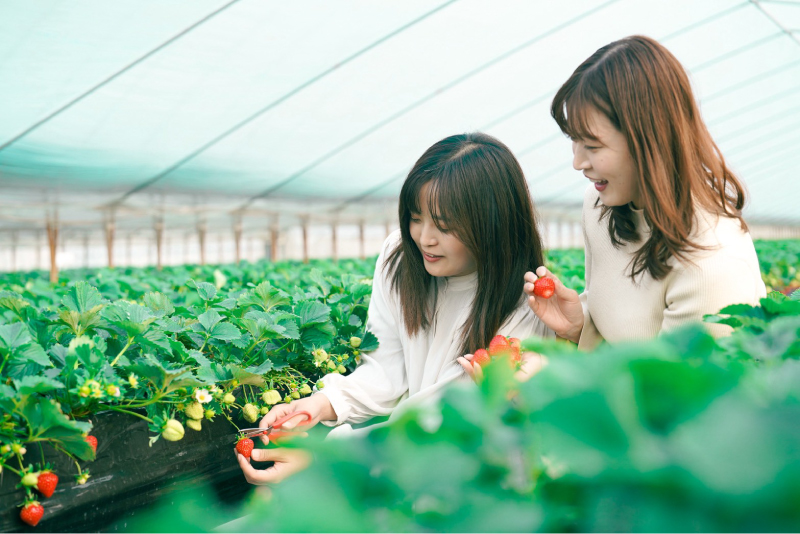 想要深度感受這片土地的溫度,騎單車漫遊是最舒心的選擇。在飛鳥車站前,只要租一台電動單車,就能輕快地穿梭在歷史的餘韻。特別是在秋收時節,漫山遍野的朱紅彼岸花與金黃稻穗交織,景色如詩如畫。而若是在冬末春初造訪,則不能錯過藏在田園溫室裡的甜美,那紅艷欲滴、香甜多汁的「明日香紅寶石(Asuka Ruby)」草莓,採下一口,便是春天的滋味。