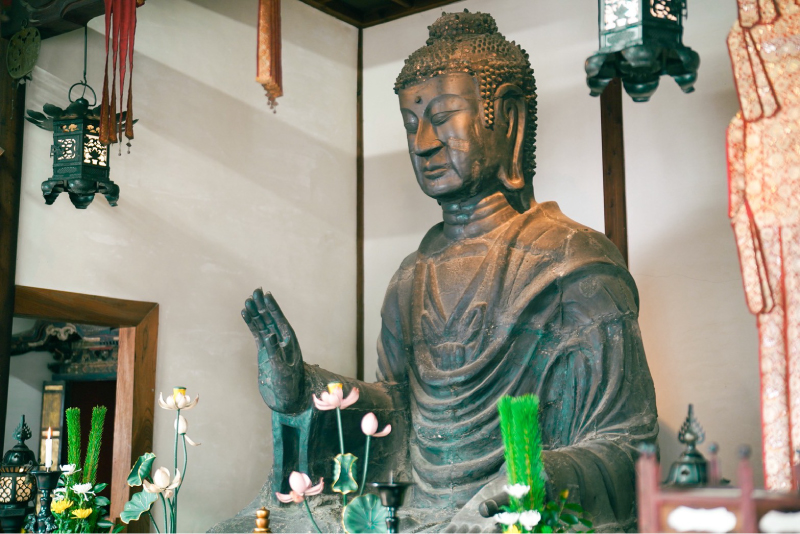 飛鳥時代是日本文化的轉捩點,聖德太子引進了佛教,也帶來了先進的建築與藝術。來到明日香村,一定要造訪飛鳥寺,裡面供奉著日本最古老的金銅佛像「飛鳥大佛」,古佛深邃的「杏仁眼」與「古拙微笑」,跨越千年依然散發著祥和的力量。