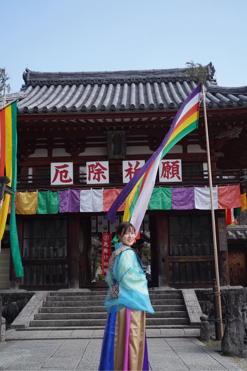 而不遠處坐落於半山腰,同樣建於飛鳥時代的「岡寺」,則承載著「義淵僧正降伏惡龍」的傳奇,千年來守護著信眾,是日本著名的消災解厄聖地,也是日本最初祈禱「厄除(消災解厄)」的寺廟。此外,岡寺又稱作「花之寺」,五月點綴著繡球花與天竺牡丹,境內華麗的「花手水」浮著繽紛花朵,成為夢幻的打卡景點。