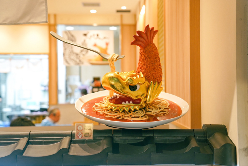 店家以名古屋城天守閣上的守護神「金鯱」為靈感,提供浮誇的炸蝦料理。(圖片來源:妮可魯)