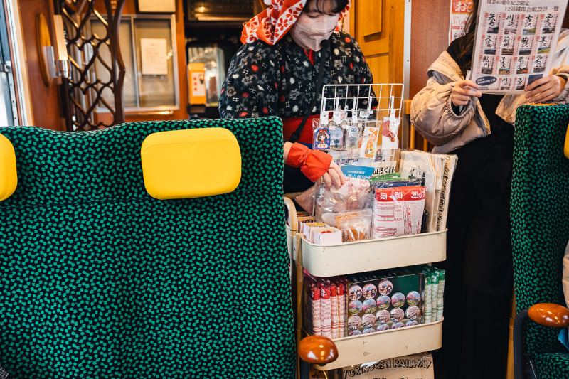 若說列車改裝為硬體上的進化,軟性質的文化體驗,可說是來日本旅遊另一個不能錯過的體驗。旅客在搭乘由利高原鐵道時,可以特別選09:40在矢島發車或是10:43在羽後本莊發車的車次(詳細車次請再次跟官網確認),因為這兩班是被稱為「真心列車」的班次,旅客可以在車上遇見穿著傳統秋田服裝的女性服務人員,她們被許多人親切地稱為「秋田姑娘」列車長。