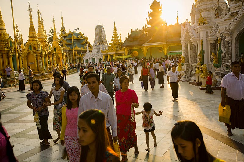大金塔人潮絡繹不絕,緬甸各地的信徒都會來仰光朝聖。(圖片來源:翼賢 Louis Liu)