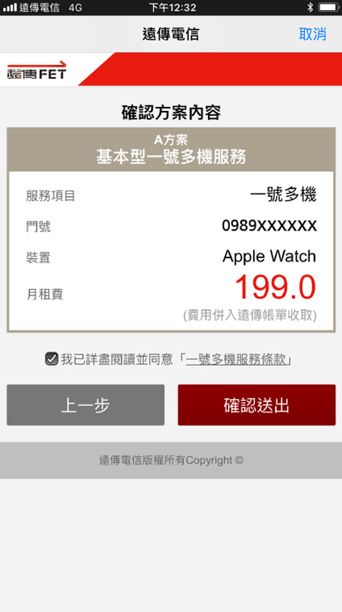 | 單門號優惠 | 申辦本方案享「Apple Watch 全系列 LTE版」超值優惠價,請洽遠傳門市 | |||