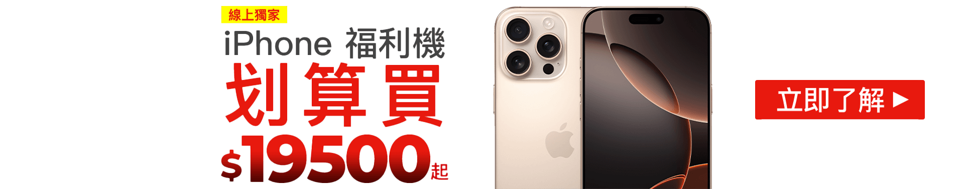 購買iPhone Air系列空機,可享限時折扣最高NT$2,500元。現折$1,288 與 $2,500之活動與贈禮活動僅擇一,不可疊加使用,且不可與其他優惠活動疊加使用。