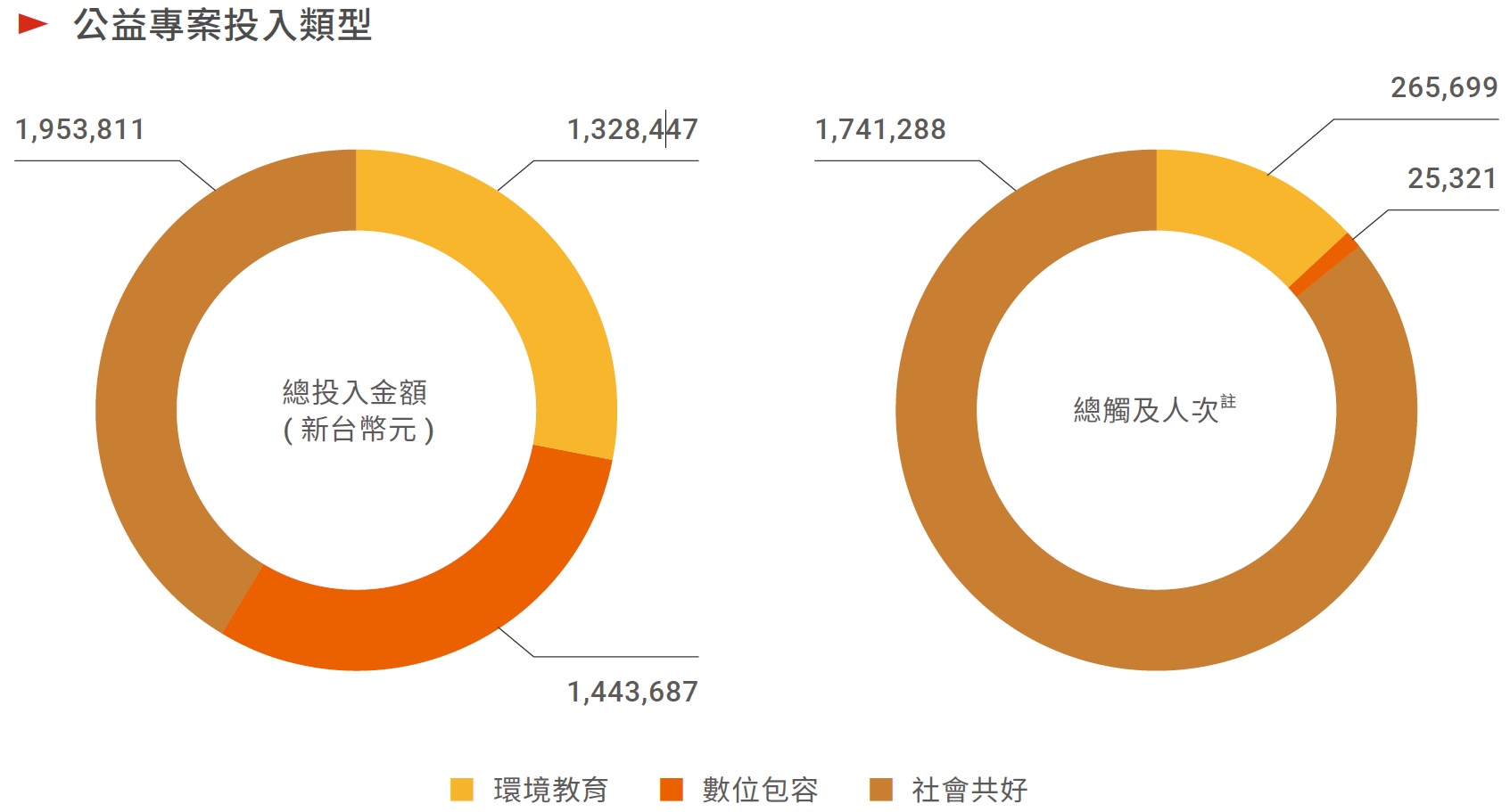| 公益專案直接投入金額 | 5,710,537 | 2,531,955 | 674,657 | 850,039 |