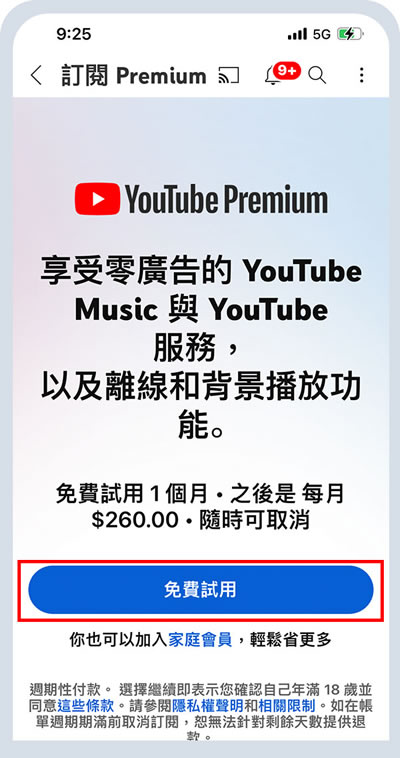 活動期間:2025/1/1-2025/12/31。 此優惠一人僅限使用一次,限領劵門號透過遠傳帳單代收訂閱YouTube Premium服務,方享有由遠傳提供之六個月半價優惠折扣,且本兌換券不得轉讓。 YouTube Premium可選擇個人及家庭方案(學生方案不適用此優惠活動),惟5折優惠標準,皆以iOS個人方案方案價格5折計算($260元五折),最高可享遠傳提供之$130帳單折抵金。 YouTube Premium新用戶或訂閱中用戶皆適用本優惠,唯新用戶於領券後限當月月底前,需透過本活動指定連結且使用遠傳帳單代收訂閱YouTube Premium 任一月租方案,方才享有本活動優惠。 遠傳提供之$130帳單折抵金將於用戶之YouTube Premium 付費扣款後的次期或是次次期遠傳帳單代收費用中進行折抵,並可享有連續6個月的帳單折抵優惠,若優惠折抵期間單月有取消訂閱,則該月將不提供折抵優惠,且未使用到的優惠恕不遞延。 YouTube Premium將不定期針對首次訂閱用戶或是特定條件用戶推出免費試用方案,相關資訊請上YouTube Premium官網查詢:進一步瞭解YouTube Premium 試用期和促銷活動。 friDay影音、Netflix、YouTube Premium月租半價起兌換券僅能3選1,並將享有訂閱服務之前6個月月租半價優惠,第7個月恢復原價收費。 遠傳電信、YouTube Premium 保留對本活動最終內容修改、變更、取消、終止、解釋或暫停之權利,相關內容及規範,悉依最終本活動公告內容為準。